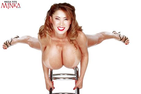 Big Tit Hookers: Adorable south korean red-haired milf Minka in fancy shorts exhibiting big boobies and playing with sex toy