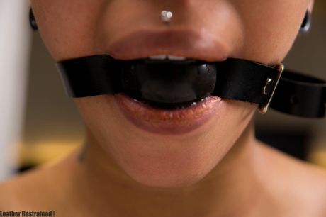 Club Leather Restrained: Asian teen amateur girl shows her tiny tits and pierced nipples in a solo
