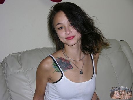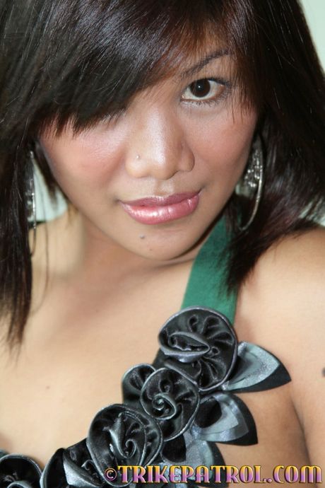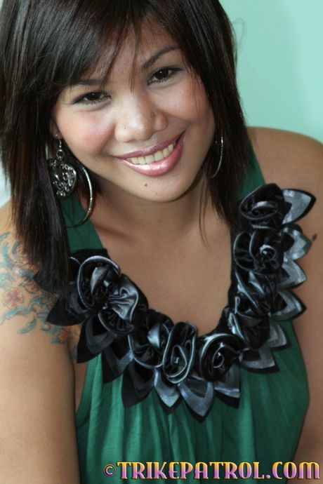 Trike Patrol: Asian teen Charo strips to her stockings and shows her tiny tits and ass