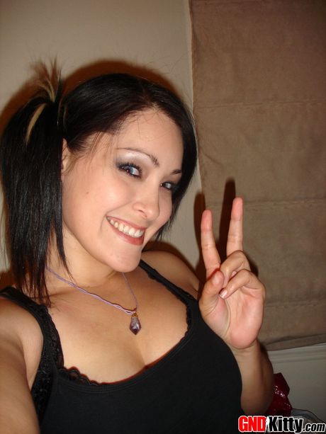 GND Kitty: Asian teen Kitty strips and shows her amazing melons and ass in a solo