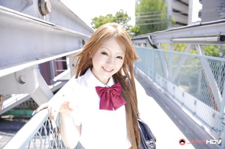 Japan HDV: Hot japanese redheaded milf Ria Sakurai in skirt exposes her butt