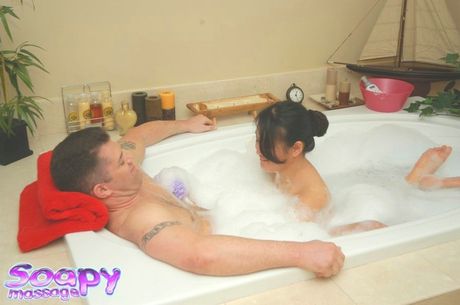 Soapy Massage: Hot oriental dark hair Miko Sinz suck dick and fuck in her nice pussy in the bathroom