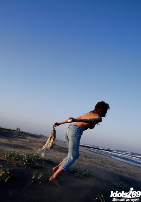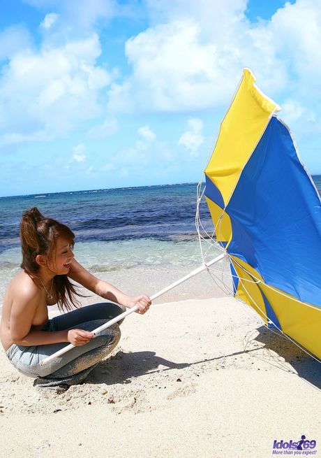 Idols 69: Platinum Japanese babe Nao Yoshizaki reveals her tiny tits and hot ass on the beach