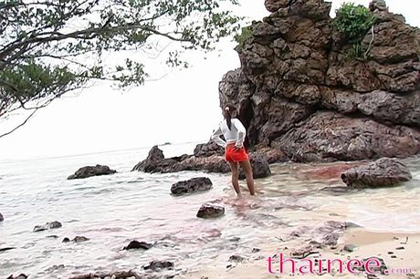 Thainee: Really tiny Thai girl takes shower under a waterfall