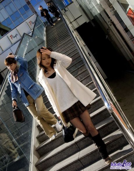 Soapy Massage: Sexy oriental brunette Evelyn Lin in skirt uncovering tiny tits and undressing in shower