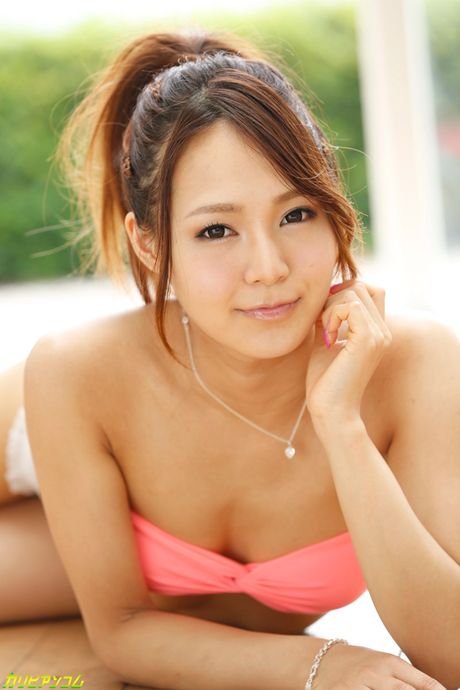 All Gravure: Short haired asian goddess wearing a brown bikini with perky tits