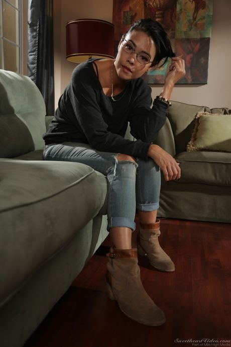 Sweet Heart Video: Slender american dark-haired hottie Dana Vespoli in sexy jeans reveals small tits and hairy pussy